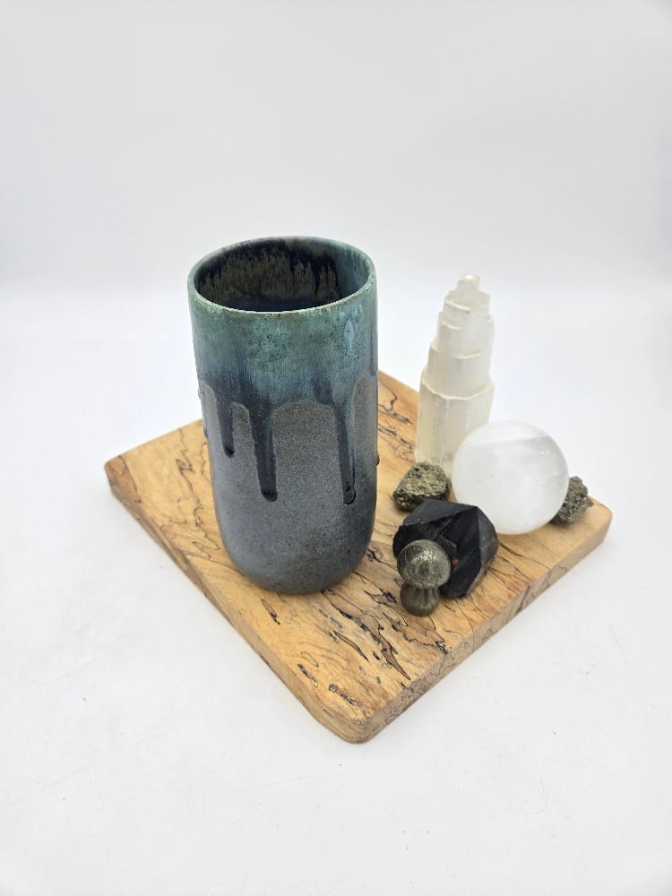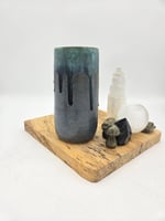 Handcrafted Blue Drip Vase approx 8 inches tall, 4 inches wide at opening. Microwave and dishwasher safe.