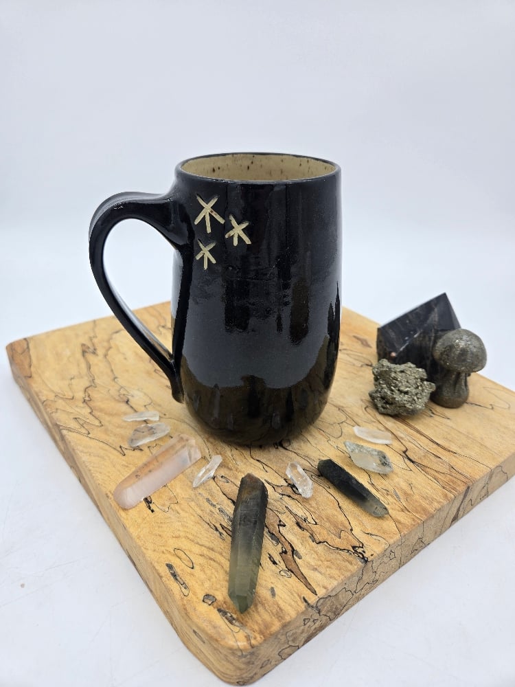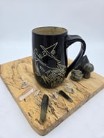 Black witch and cat mug, holds approx 18 oz. Handcrafted in Kitchener Ontario.