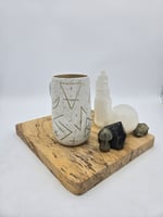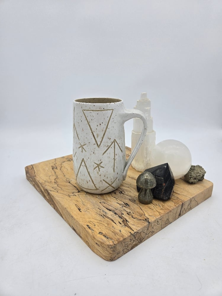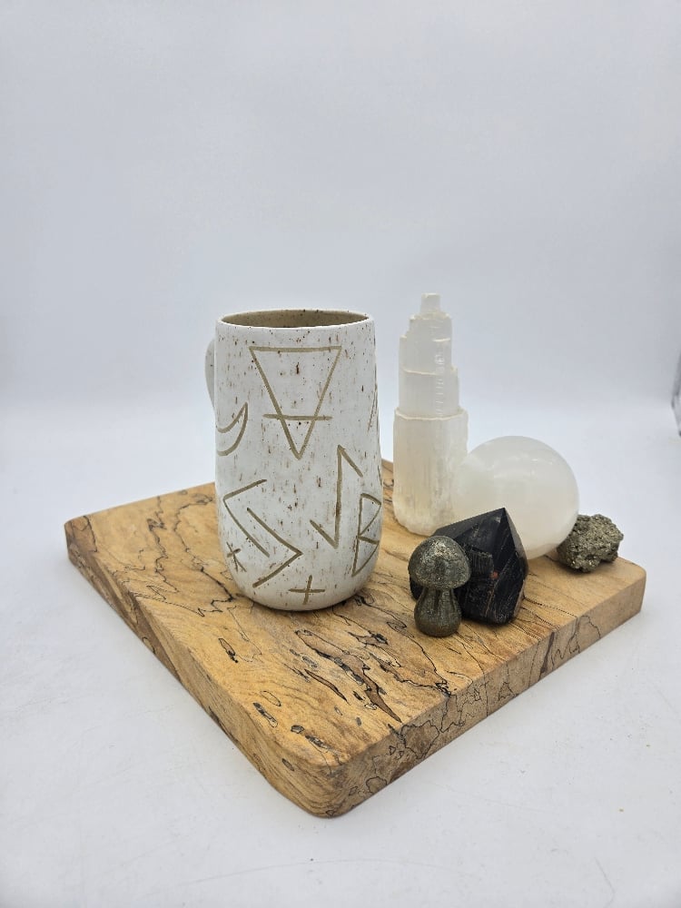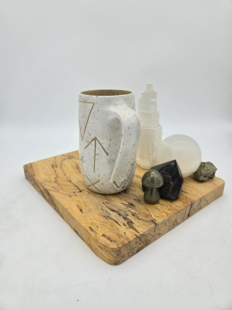 Handcrafted Black and Tan Rune and Elements Mug, holds approx 18oz. Microwave and dishwasher safe.